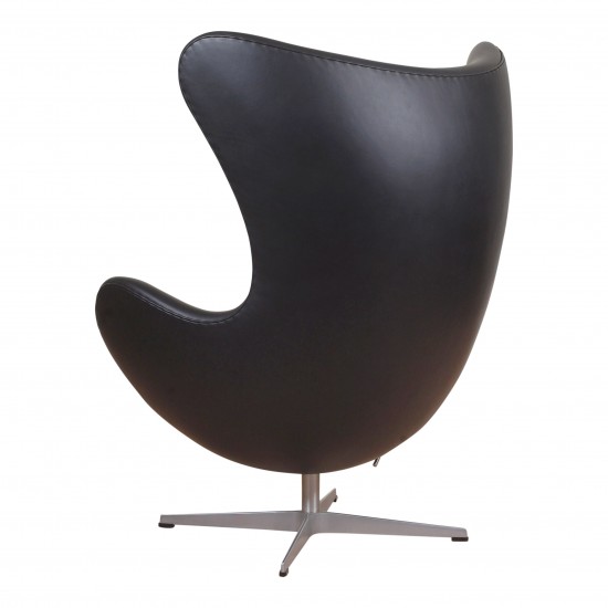 Arne Jacobsen Ægget nypolstret i sort anilin læder