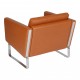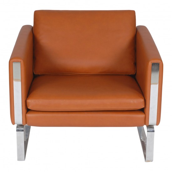 Stand: Stolen fremstår nybetrukket i walnut anilin læder, og med poleret stel.