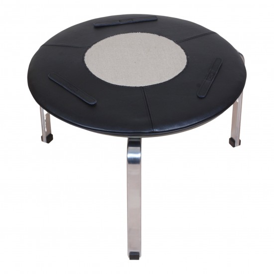 Poul Kjærholm PK-33 skammel nypolstret i sort anilin læder