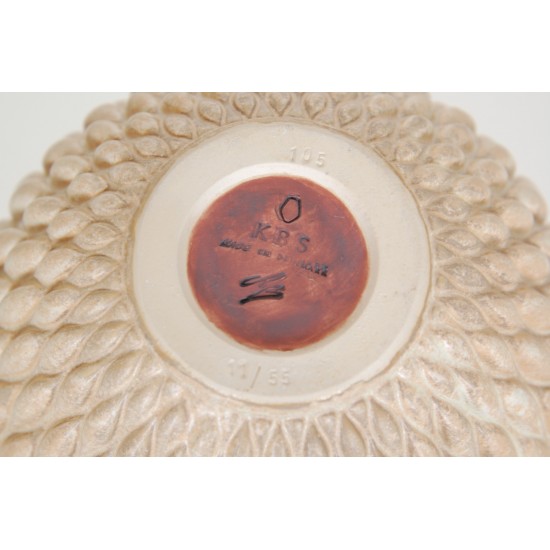 Anders Børgesen helt ny beige stentøjsvase med knopper, af Kronborg Stentøj. Vasen er håndlavet i Danmark og er signeret i bunden.