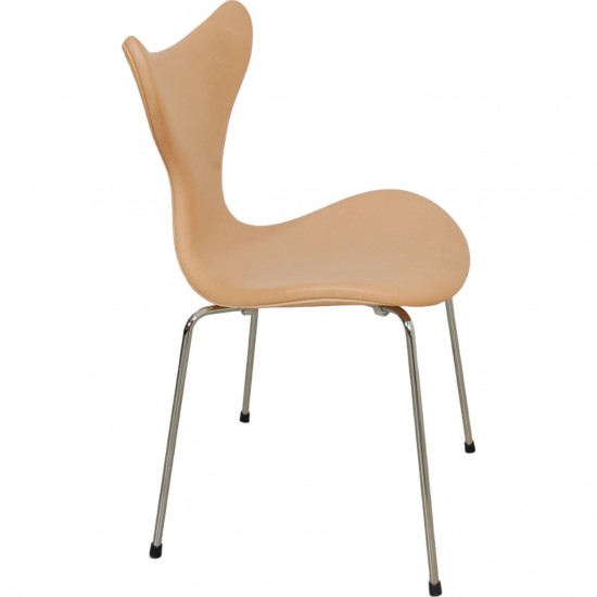 Arne Jacobsen Lilje stol betrukket med originalt natur læder. Stolen er fra 2019 og fremstår i flot stand med let patineret læder.