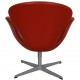 Arne Jacobsen Svane stol betrukket med originalt rødt Aura læder fra Fritz Hansen. Stolen er fra 2006 og fremstår med patineret læder og med et par mærker og ridser i læderert. Stolen fremstår med automatisk returdrejs funktion.