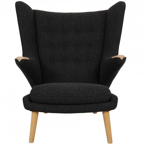 Hans Wegner Bamse stol betrukket med mørkegråt hallingdal stof, og med ben og negle af sæbebehandlet bøg. Stolen er fra 1980'erne, men er blevet fuldstændig istandsat med nyt betræk, ny hynde, og med renoveret ben og negle.