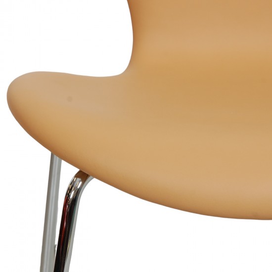 Arne Jacobsen Syver stol, 3107, nypolstret i natur farvet Nevada anilin læder