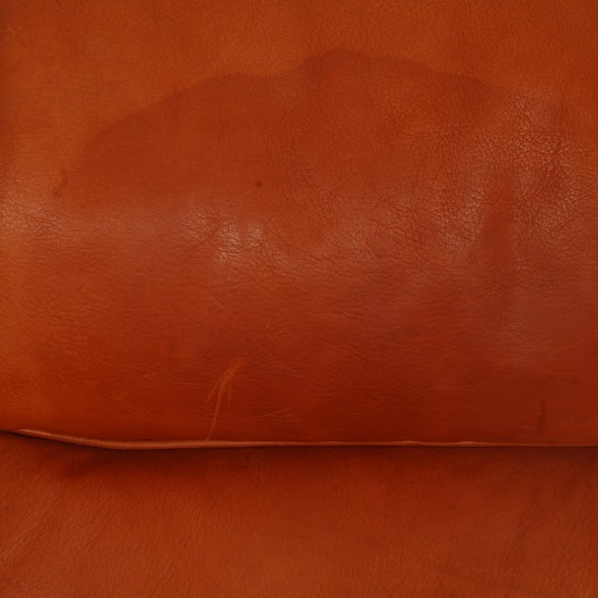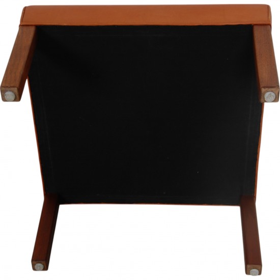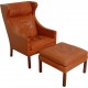 Børge Mogensen Øreklapstol med skammel i patineret cognac læder