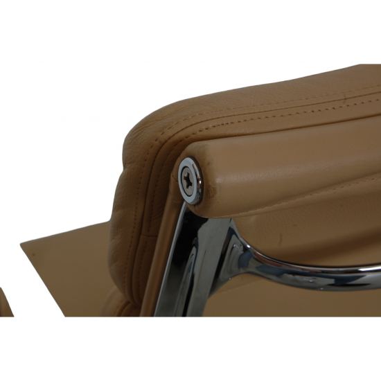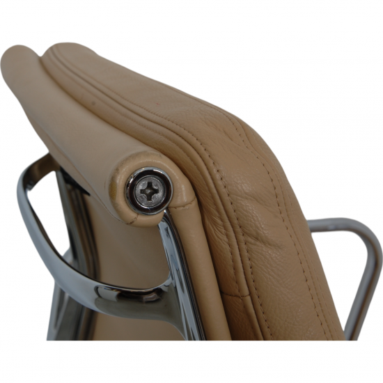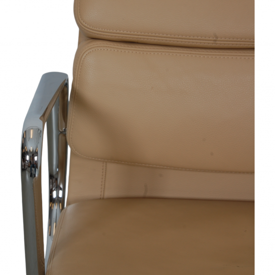 Charles Eames EA-217 kontorstol betrukket med beige læder, og med et stel af krom. Stolen er fra omkring år 2010, og fremstår i god stand, dog med enkelte mindre mærker og ridser på armlænene. Stolen fremstår med højde justering og vippefunktion
