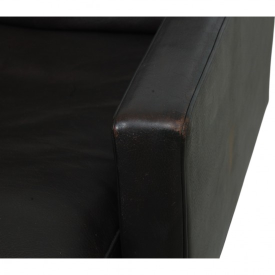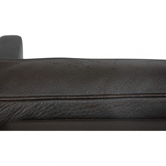 Poul Kjærholm PK31 lænestol betrukket med originalt mørkebrunt læder fra Fritz Hansen. Stolen er fra 1985 og fremstår i god stand med patineret læder og med let rust på stellet. Stolen har stel af krom fjedestål.