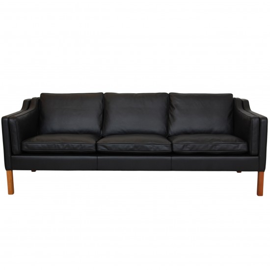 Børge Mogensen 2213, 3.seater sofa reupholstered in black nevada aniline leather