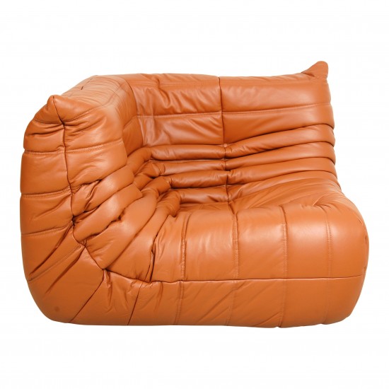 Michel Ducaroy Togo corner chair reupholstered in cognac classic leather, with the original inner frame and base fabric. The design originates from the 70s.