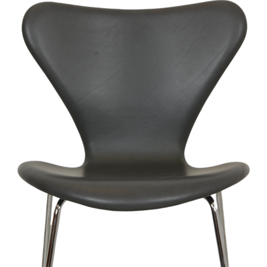 Arne Jacobsen barstool reupholstered in dark grey classic leather