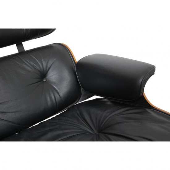 •Condition: Second-hand Eames Lounge chair with ottoman in black leather.