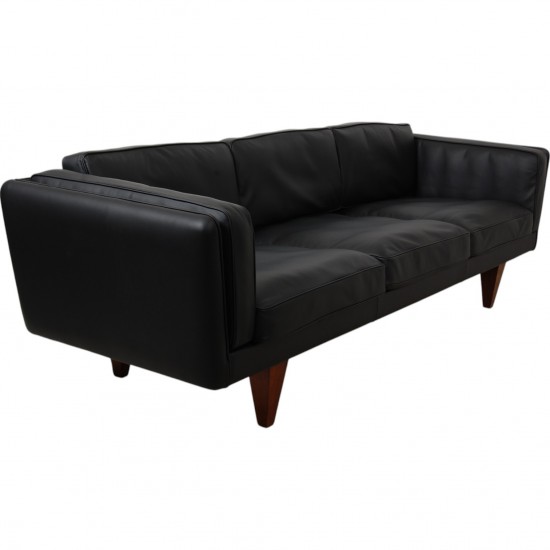Illum Wikkelsøe 3.seater V.11 sofa reupholstered with black semi anilin leather. The sofa appears in great condition but with a few minor marks on the legs.