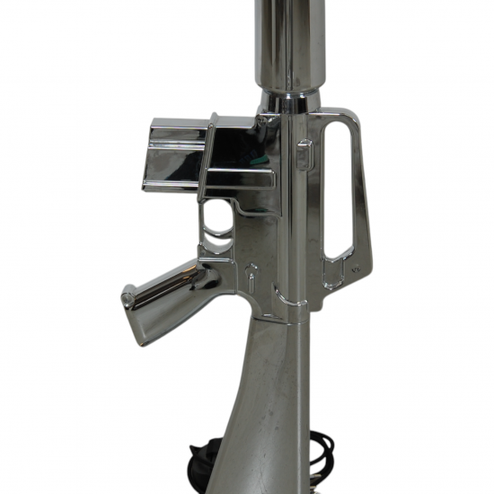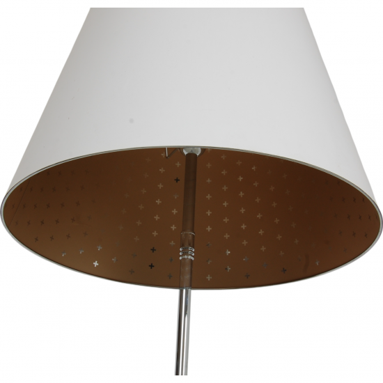 •Condition: Second-hand Philippe Starck chrome floor lamp with a white shade.