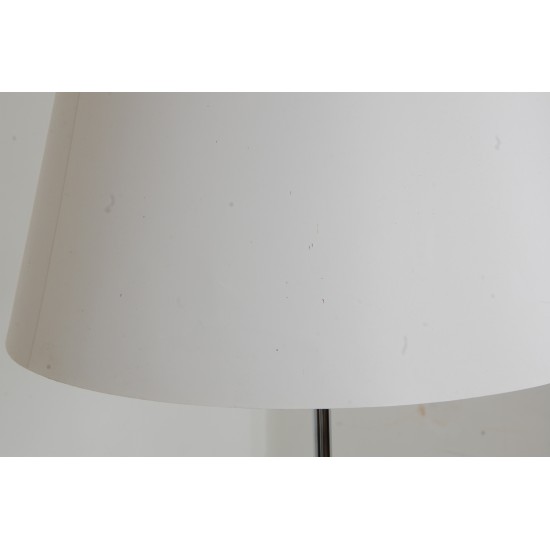 Philippe Starck chrome floor lamp with a white shade. The lamp appears in good condition with a few minor scratches on the base and a few minor stains on the shade.